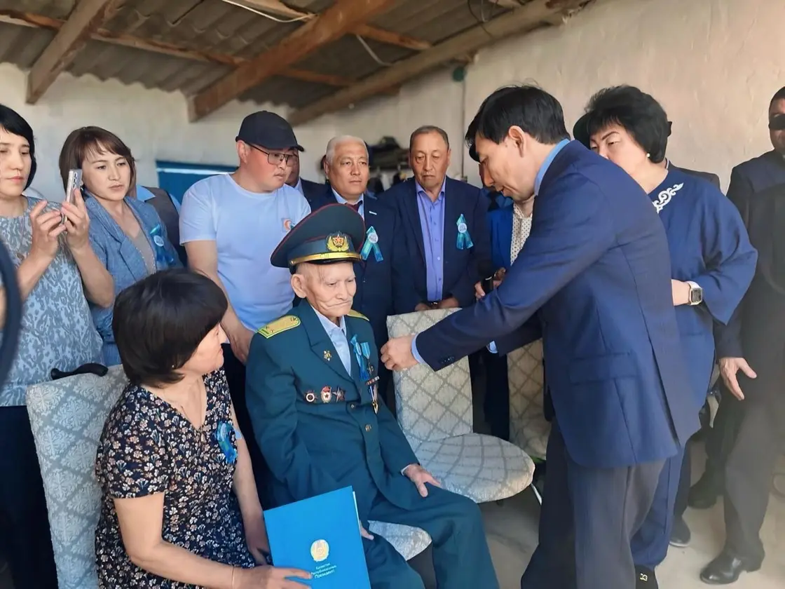 Поздравить героя приехал первый заместитель акима ВКО Жаксылык Омар. Ветерана чествовали в теплой и торжественной обстановке – с аплодисментами, благодарностью и уважением.