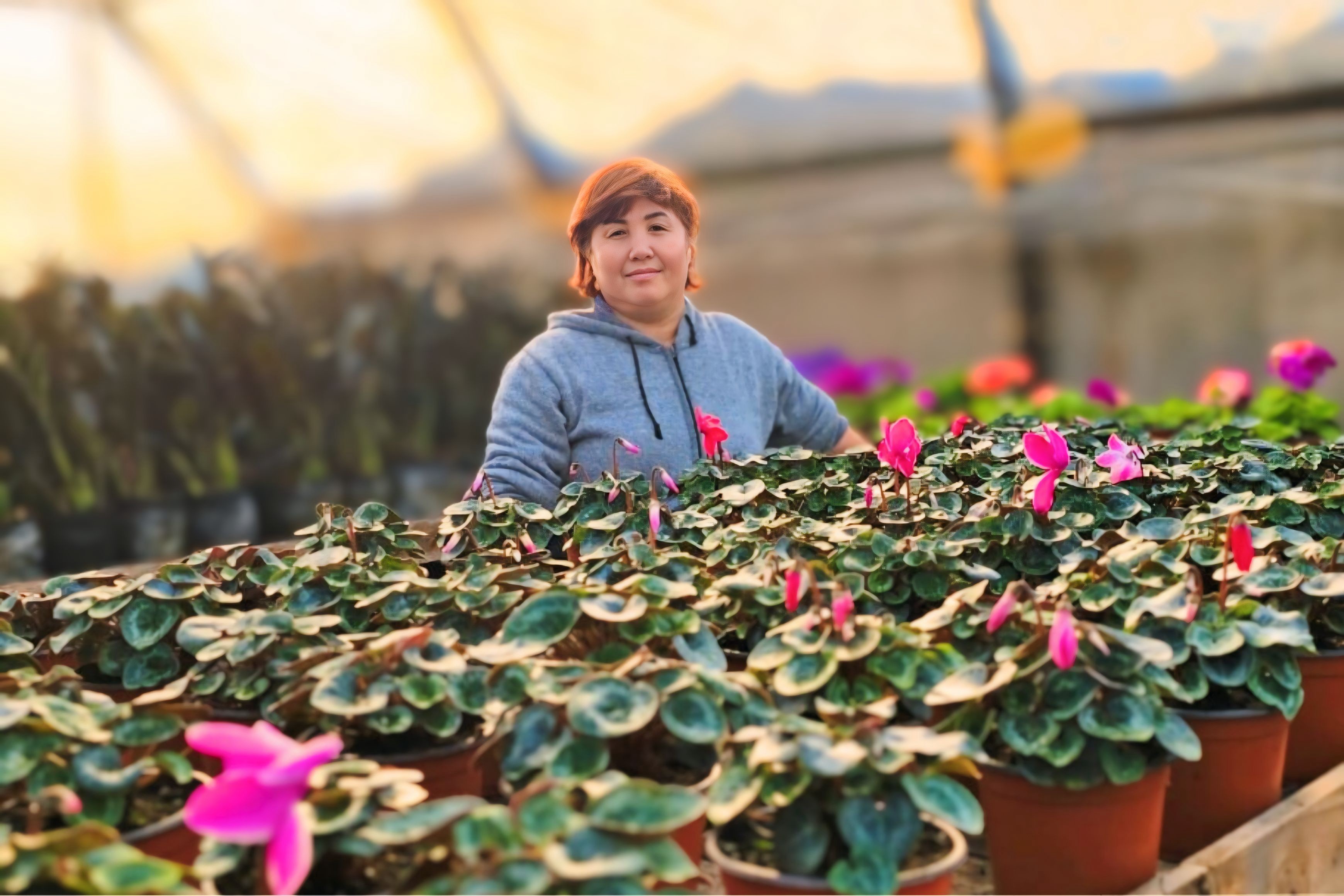 Сегодня здесь выращиваются десятки видов цветов – тюльпаны, петунии, хризантемы, астры, бархатцы. Продукция реализуется на базарах района и города Алматы, а также через социальные сети.