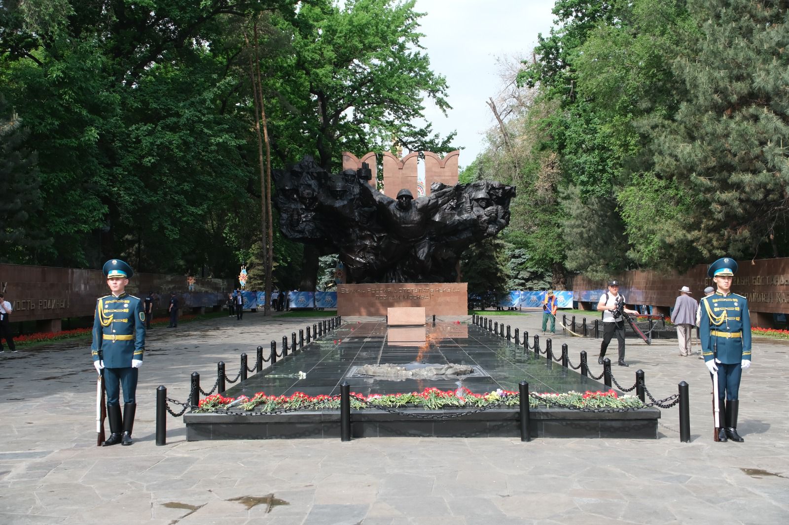 В День Победы в Алматы также прошли церемонии возложения цветов к мемориальным доскам, монументам и памятникам Б. Момышулы, Т. Бигельдинова, С. Нурмагамбетова, С. Луганского, А. Шарипова, а также мемориалам “Вечная память сынам Отчизны”, “Могила неизвестного солдата” и “Вечная слава героям, павшим в боях за Родину”.