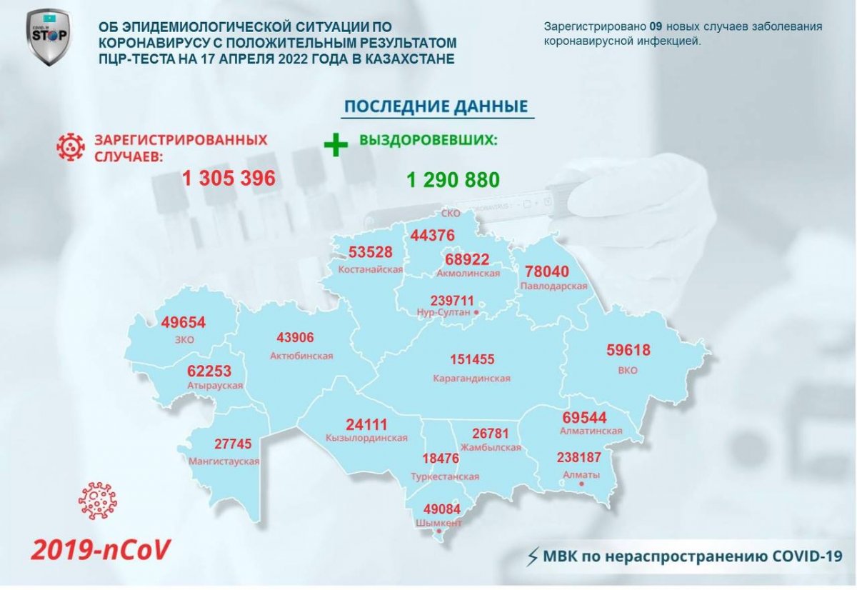 9 новых случаев COVID-19 зарегистрировано в Казахстане за 17 апреля, передает Liter.kz.