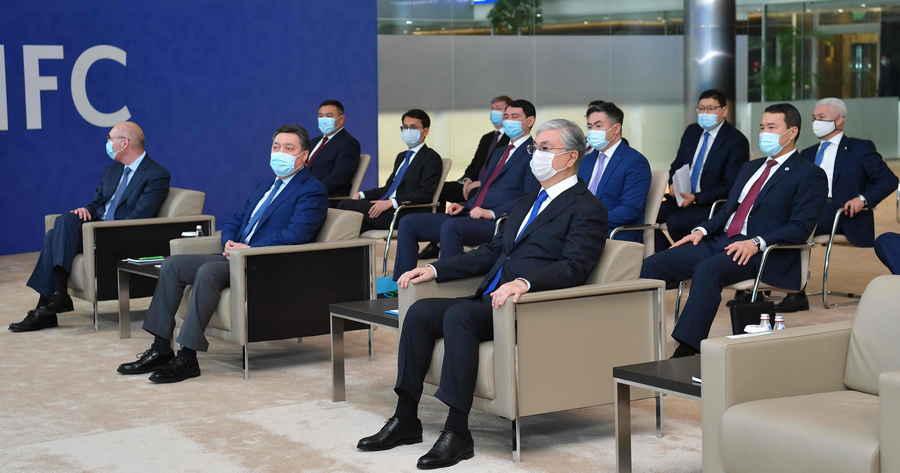 "После завершения презентации Касым-Жомарт Токаев провел беседу с руководством Правительства Казахстана и российской делегацией о перспективах двустороннего взаимодействия по таким направлениям, как технологическое развитие экосистем и цифровизация государственных сервисов", - говорится в сообщении Акорды.