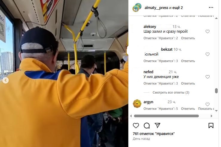 В одном из автобусов Алматы произошел неприятный инцидент. Мужчина начал кричать и пугать других пассажиров, передает Liter.kz.