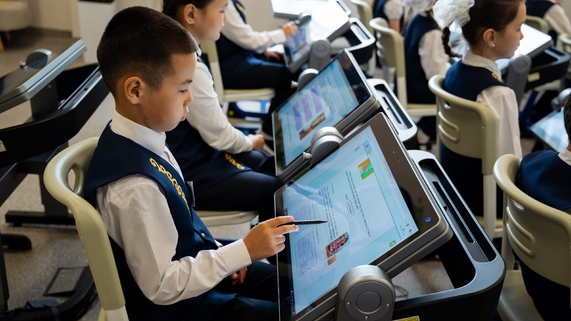 Класс оснащен 25 smart-партами. Каждая из них предоставляет школьнику индивидуальное цифровое рабочее пространство. С их помощью учащиеся работают с электронными учебниками, выполняют задания, осваивают музыкальные инструменты, а также развивают навыки 3D рисования и моделирования.
