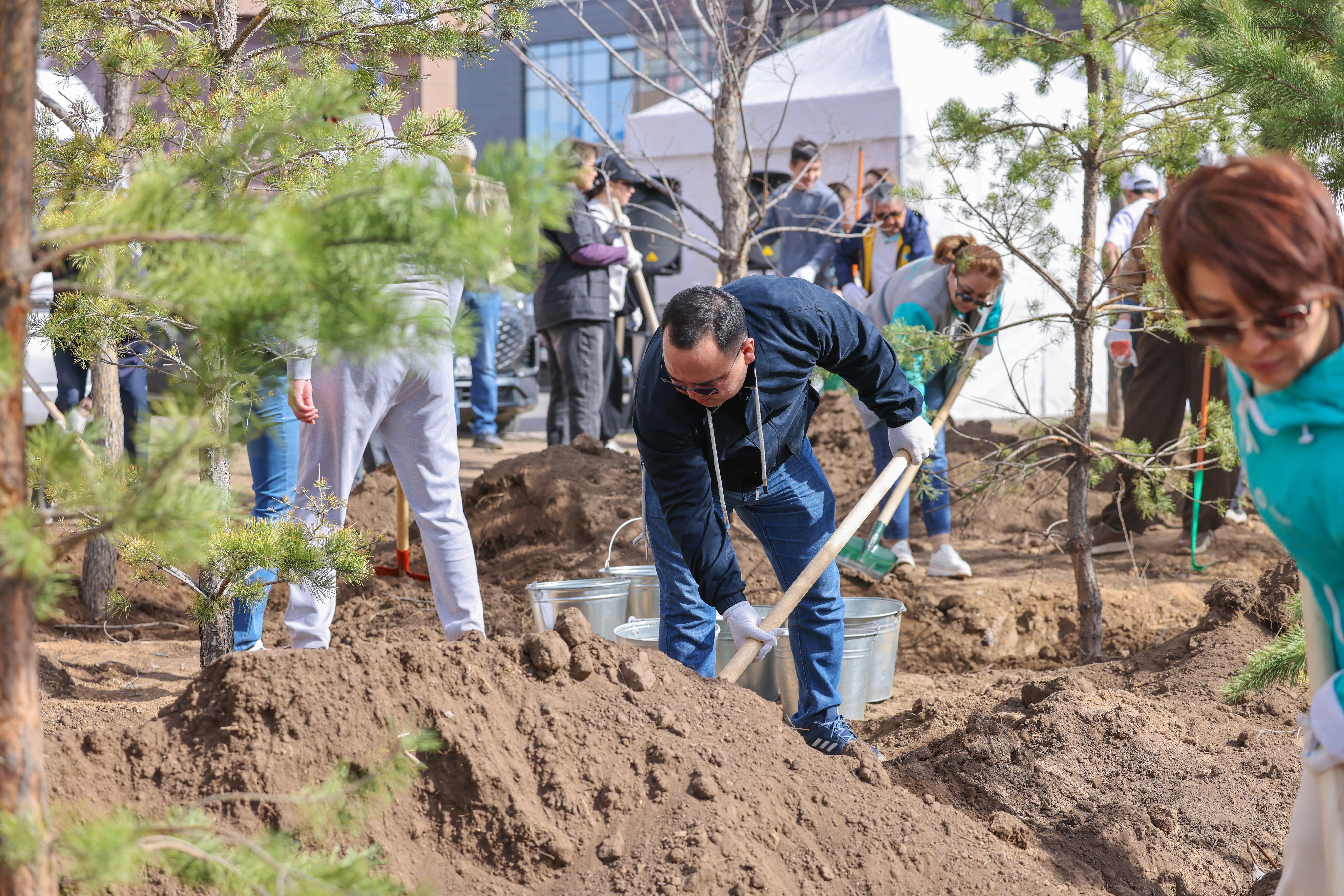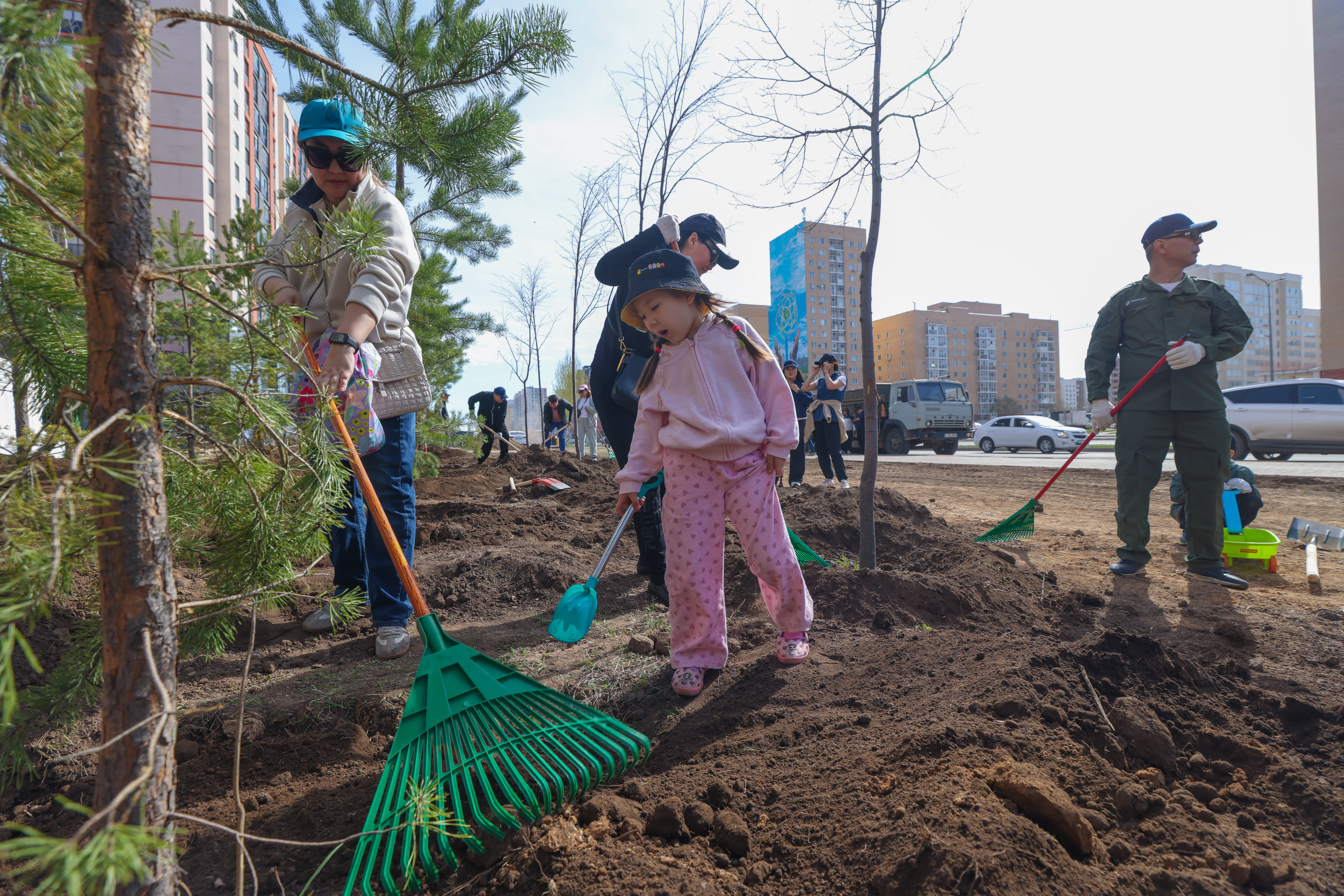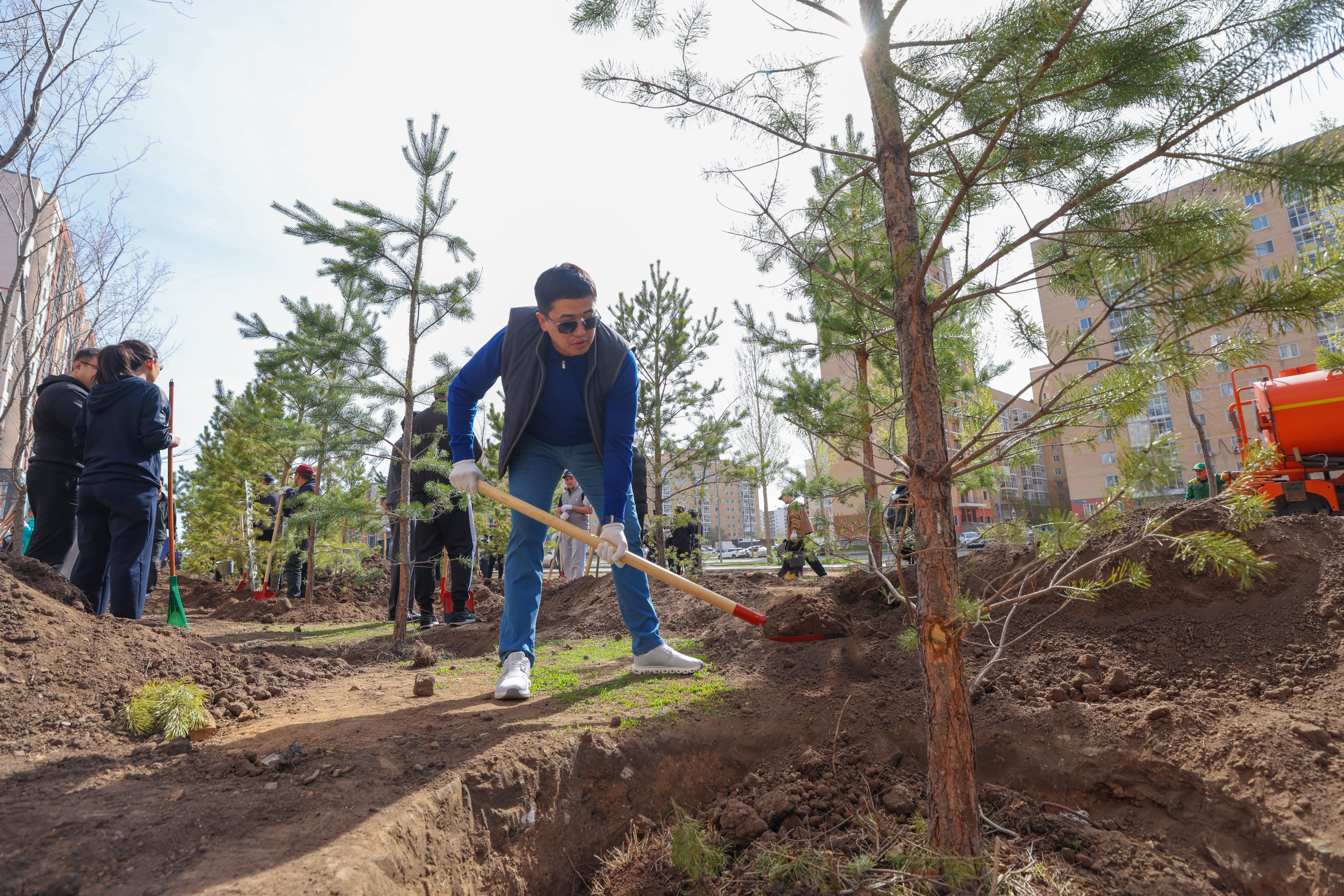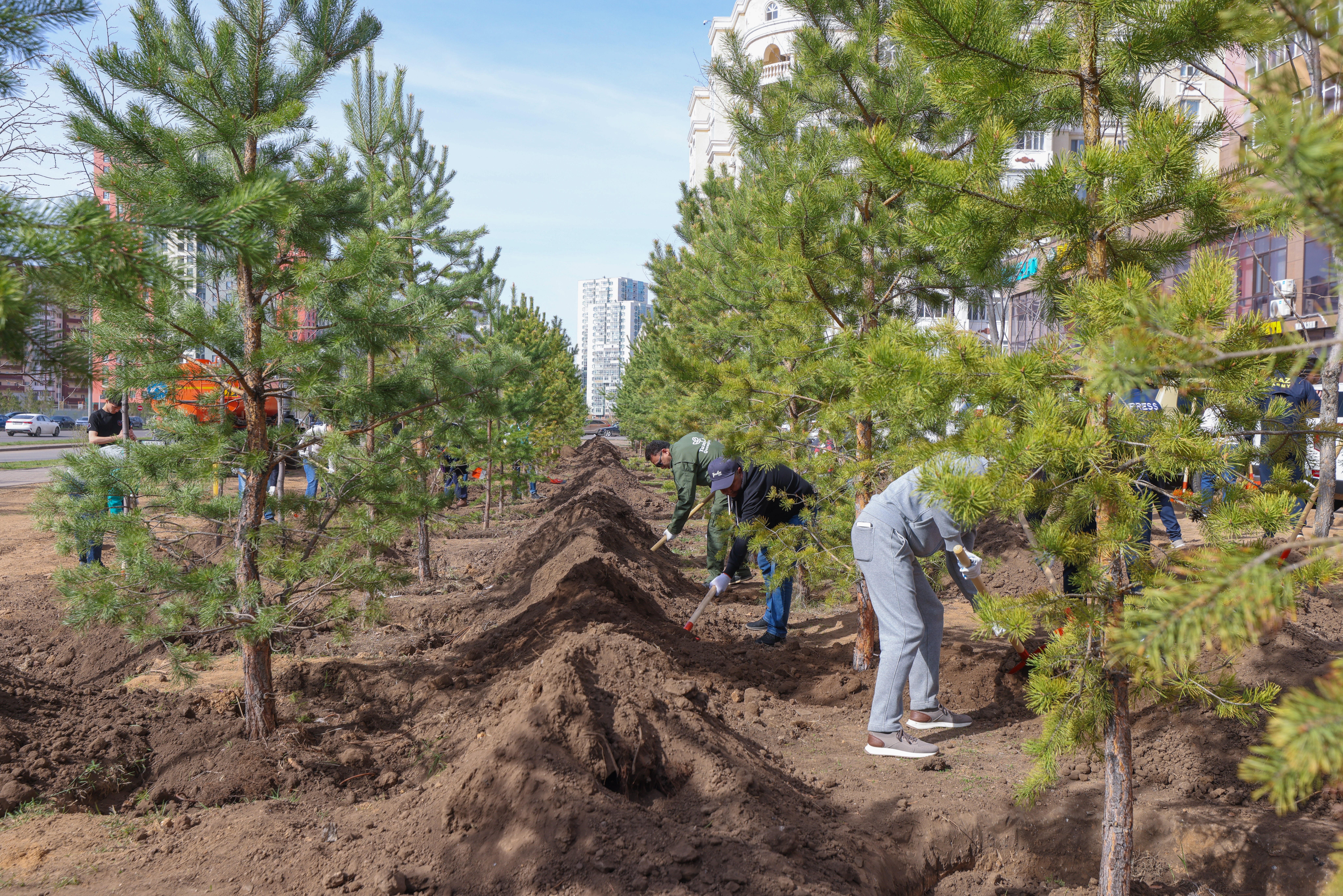 В субботнике принял участие исполнительный секретарь партии AMANAT Дәулет Кәрібек. На участке вдоль проспекта Ракымжана Кошкарбаева партийцы высадили около 50 деревьев.
