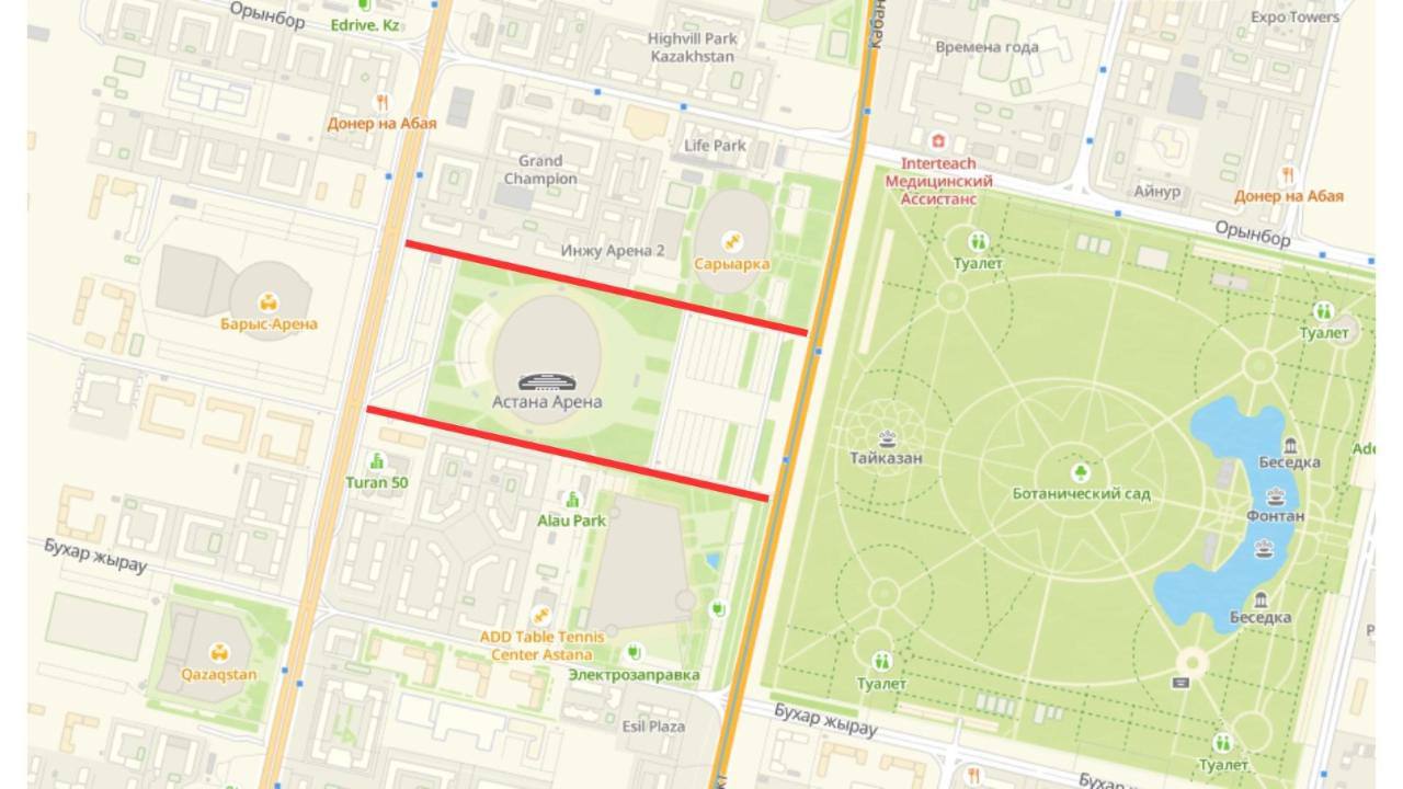 Для удобства гостей и обеспечения безопасности во время проведения концерта будет ограничено движение транспорта в районе стадиона “Астана Арена” со стороны Ледового дворца “Алау” и велотрека “Сарыарка”.