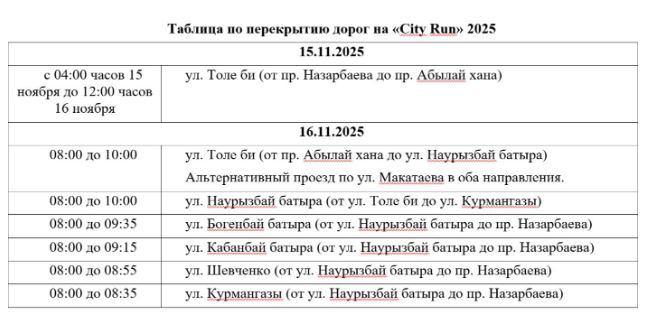 По данным Telegram-канала Almaty_Joly, в день забега движение на отдельных участках дорог будет частично ограничено: