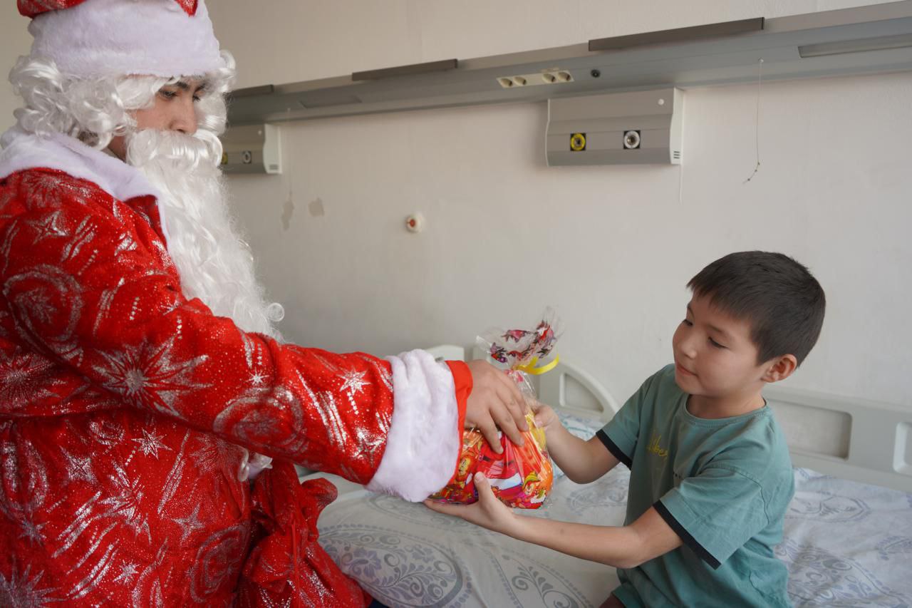 Альпинисты Деды Морозы поздравили маленьких пациентов в Алматы