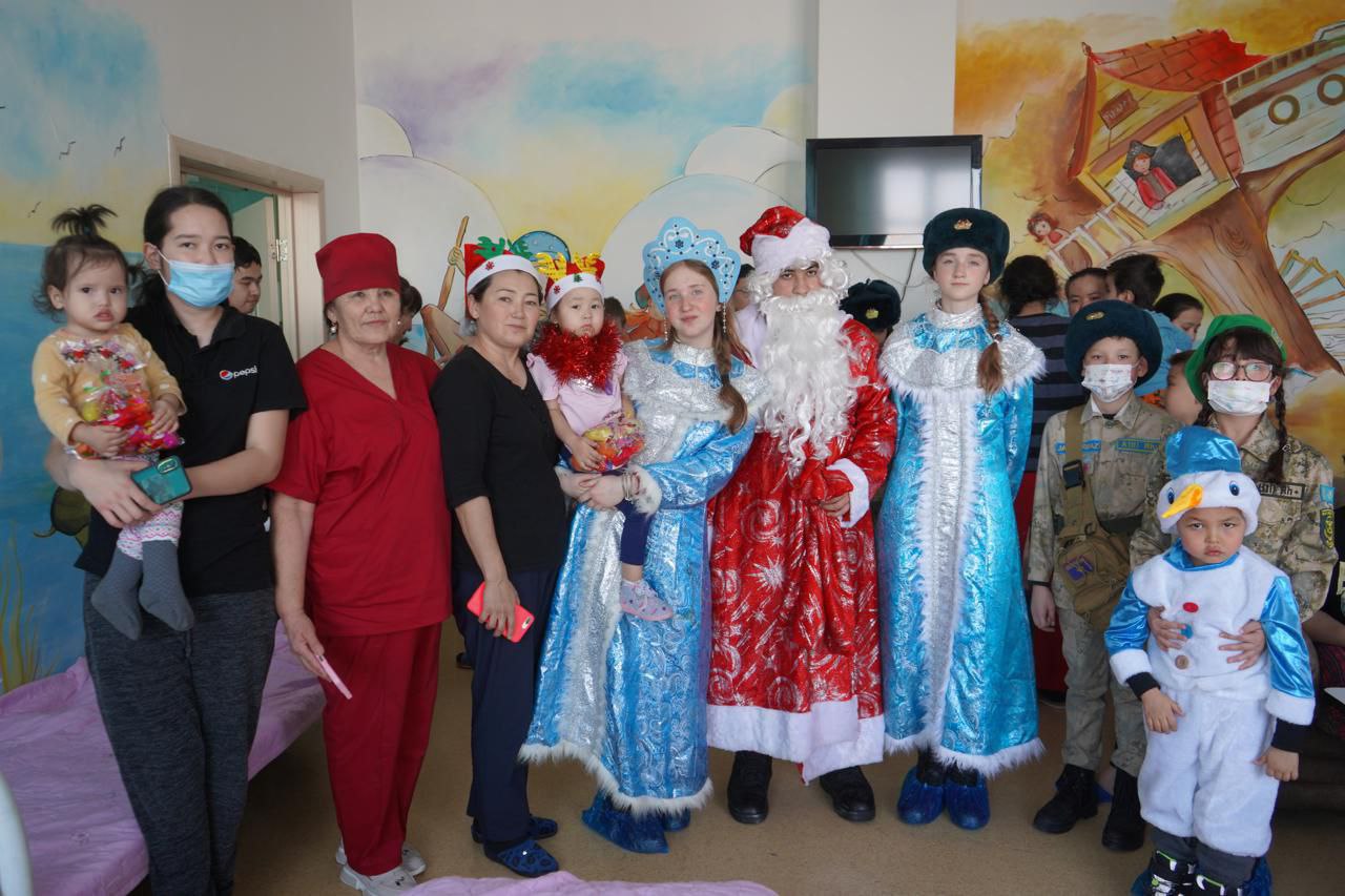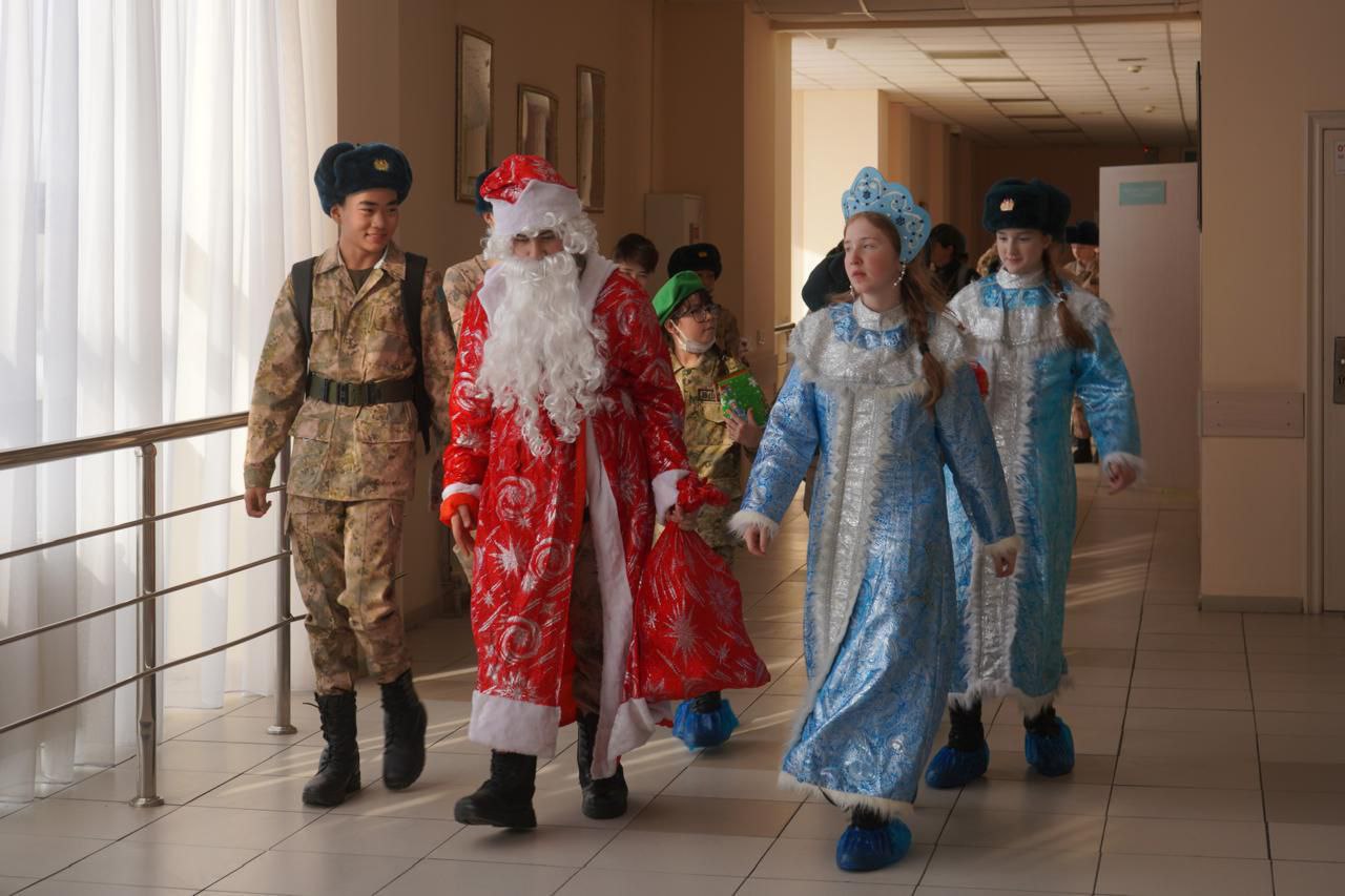 Как сообщила пресс-служба Алматинского гарнизона, они в роли Дедов Морозов спустились с крыши прямо в окна палат, чтобы вручить новогодние подарки. Дети отвечали стихами и песнями.