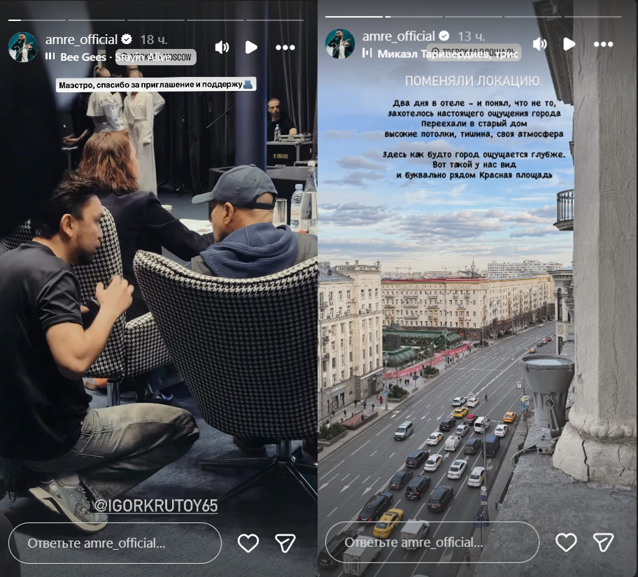 В сторис своего аккаунта в Instagram он опубликовал видео, на котором заснят с композитором. Также отмечена локация – Москва.