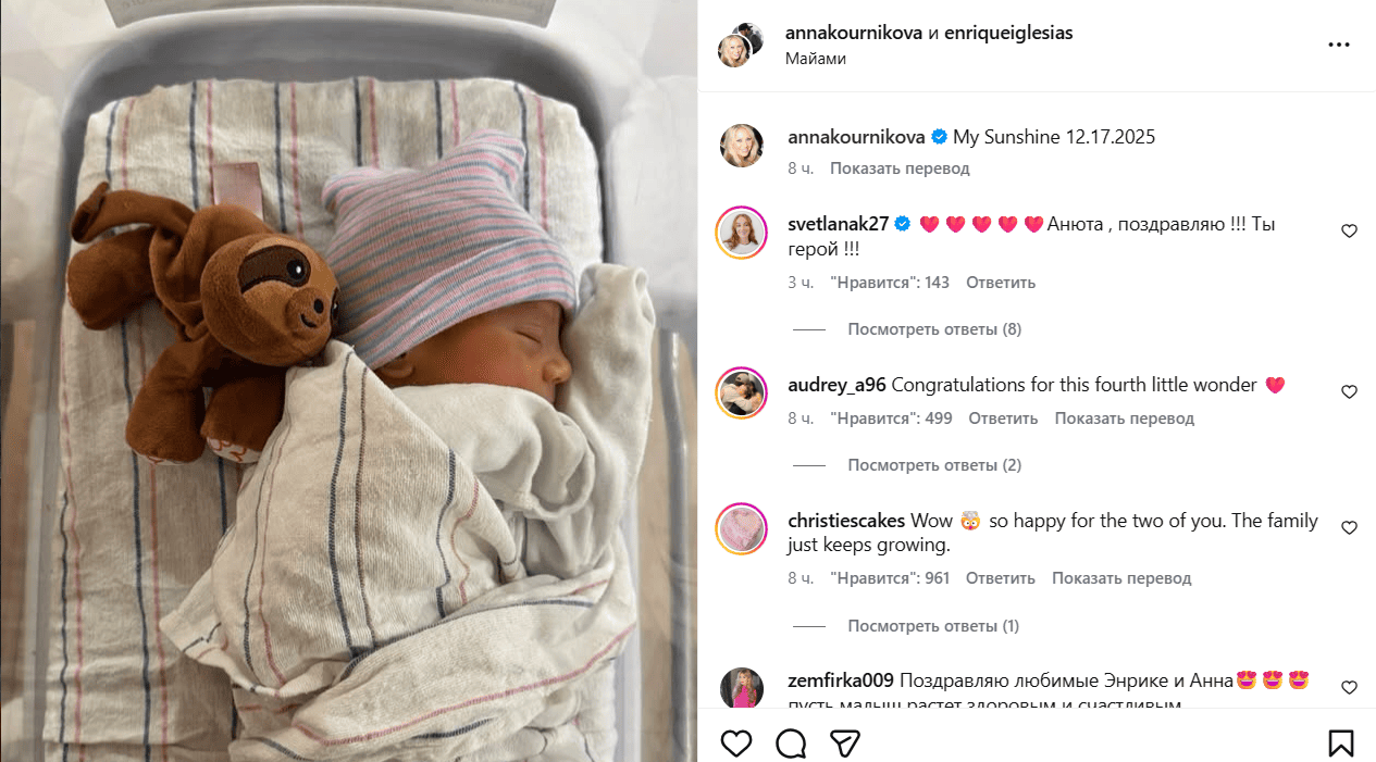 Анна Курникова и Энрике Иглесиас снова стали родителями
