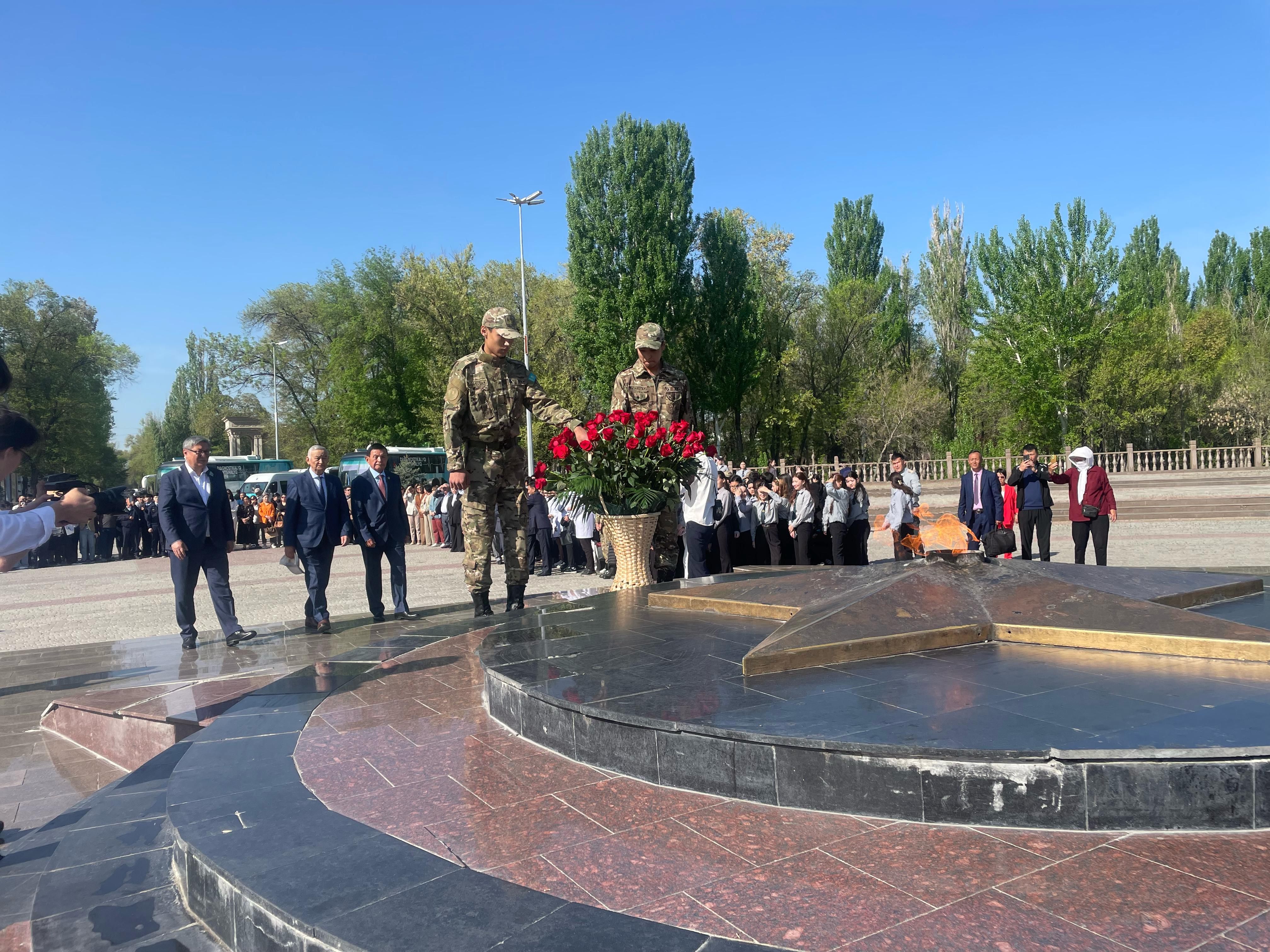 “Когда решалась судьба страны, судьба нашей земли, из Жамбылской области, в которой тогда проживало лишь 400 тысяч человек, на фронт ушли более 100 тысяч. Сегодня среди нас осталось только шестеро ветеранов Великой Отечественной. Кроме того, в области проживают 110 человек, приравненных к участникам войны. Их вклад в Победу не менее значим. Мы гордимся героическим жизненным путем наших дорогих ветеранов, чьи имена золотыми буквами вписаны в историю. Эта Победа стала возможной благодаря стойкости нашего народа, подвигу и самоотверженности предков”, – сказал он.