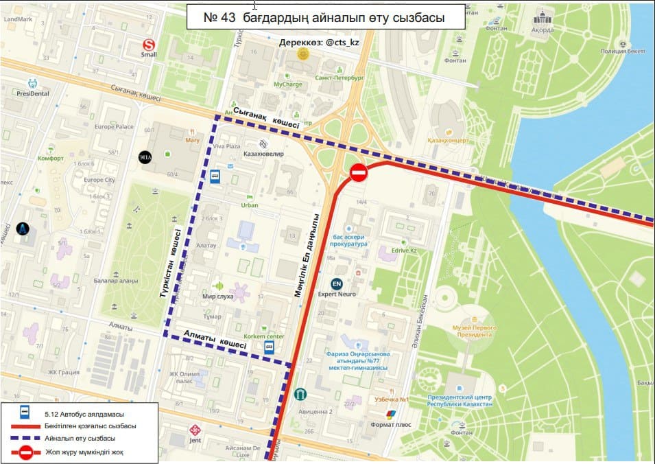 Вместо этого 43-й маршрут проедет по улице Туркестан.