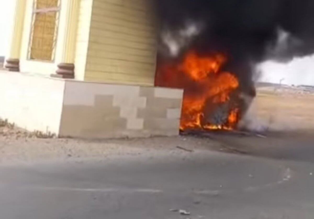Автомобиль загорелся в ДТП в Сатпаеве. Водитель погиб на месте (ВИДЕО)
