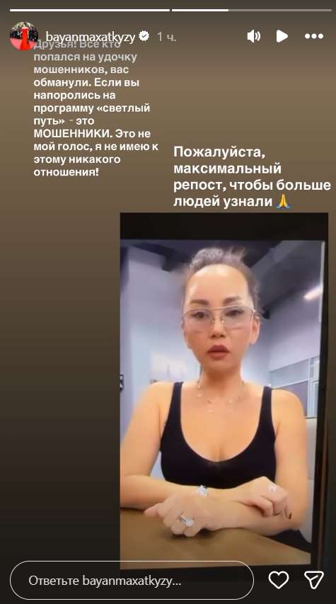 Обращение Баян Алагузовой направлено на защиту граждан от мошеннических схем и предупреждение о распространении поддельных материалов в сети.