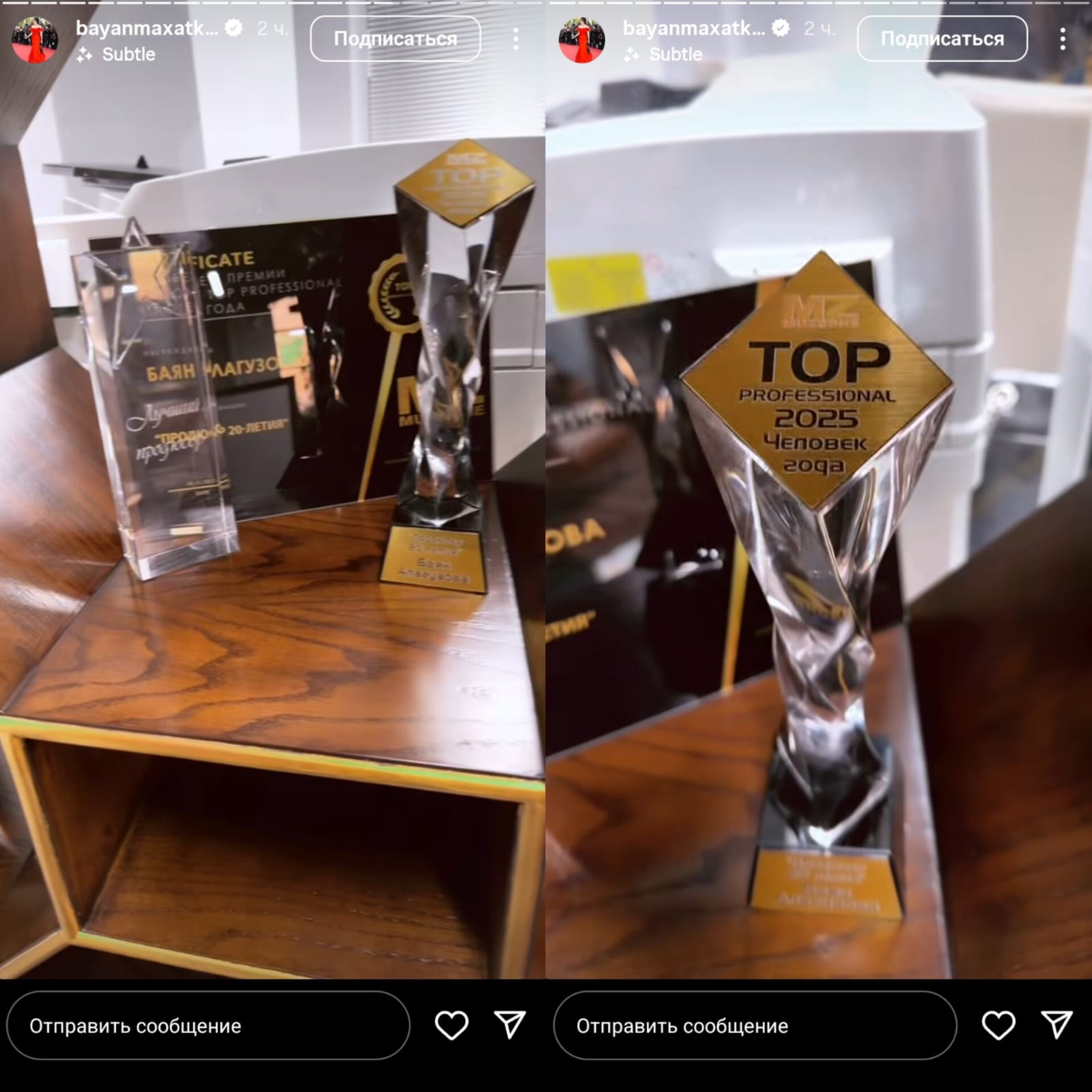 Кроме того, продюсер показала доску почета, на которой собраны все ее награды и достижения музыкальных проектов, подтверждающие значительный вклад в развитие казахстанской музыкальной индустрии.