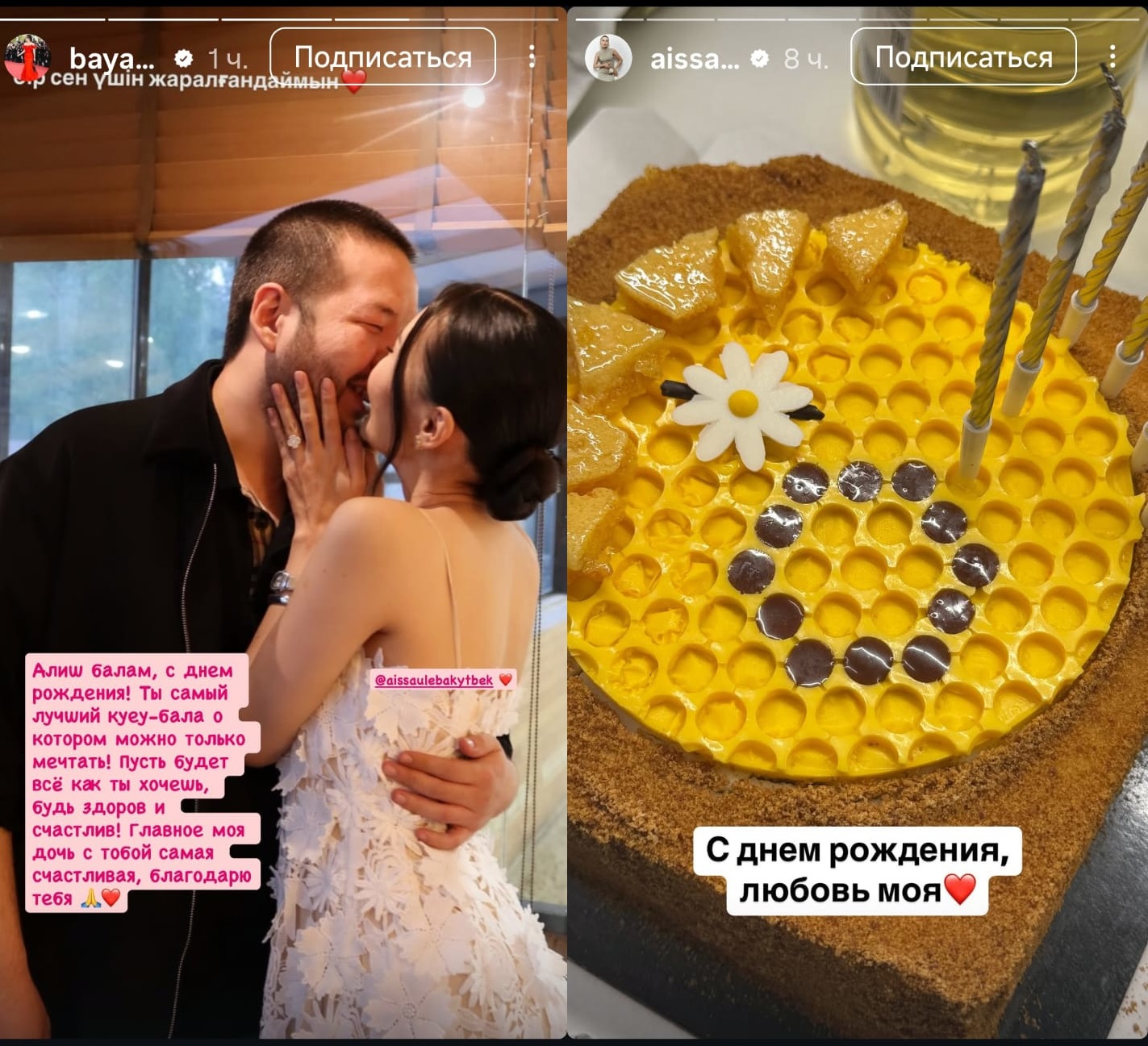 Айсауле Бакытбек опубликовала фото торта с подписью “с днем рождения, любовь моя”.