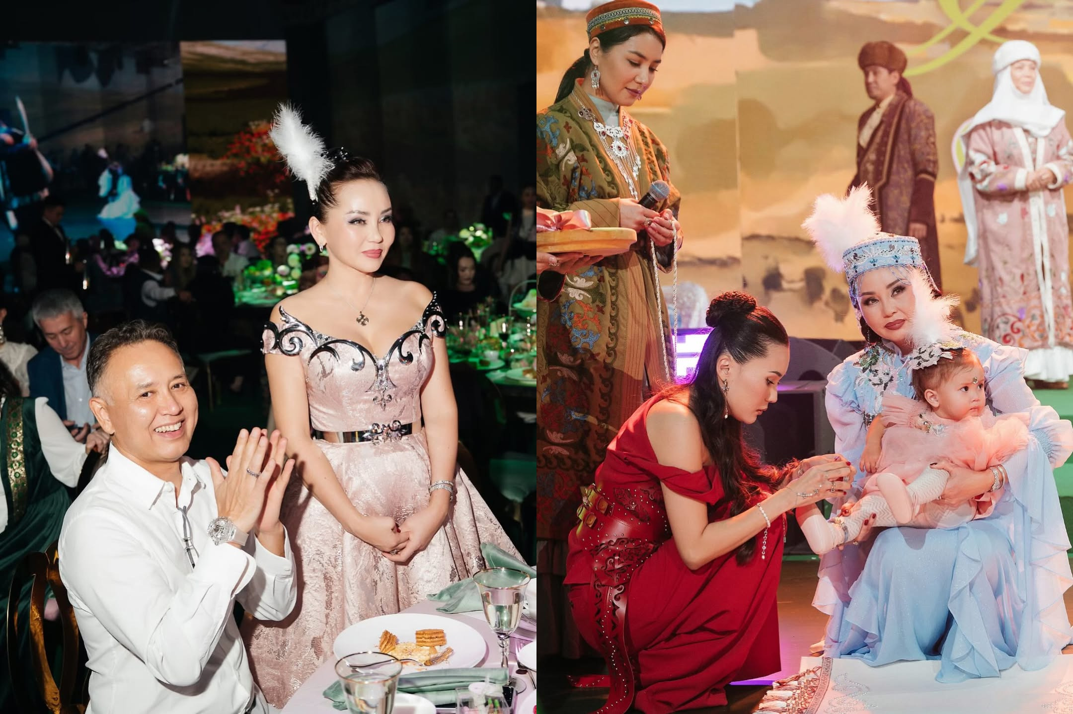 Отметим, что темой мероприятия были волшебные сказки. К примеру, супруга казахстанского певца Айкына Толепбергена Жулдыз Омиргали пришла в образе сказочницы, за что получила в подарок от хозяев брендовую сумочку.