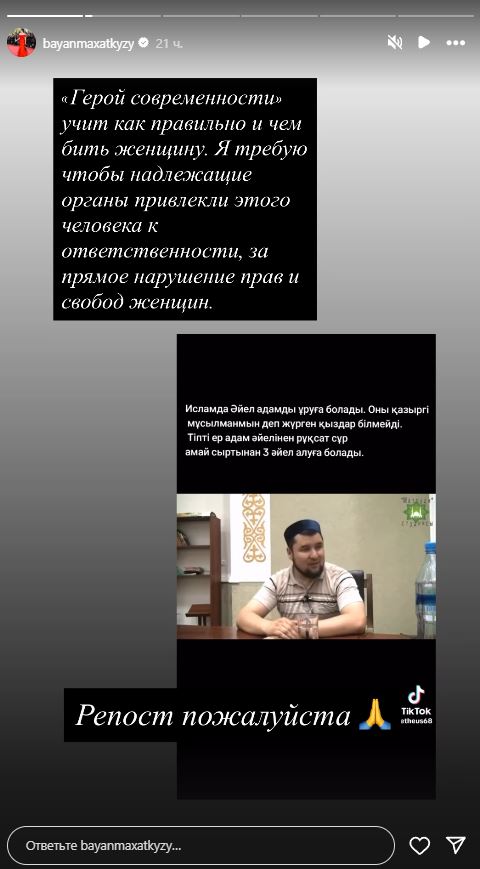 Казахстанский продюсер Баян Алагузова просит привлечь к ответственности мужчину, который распространяет опасные и дискриминационные высказывания в адрес женщин, передает Liter.kz.
