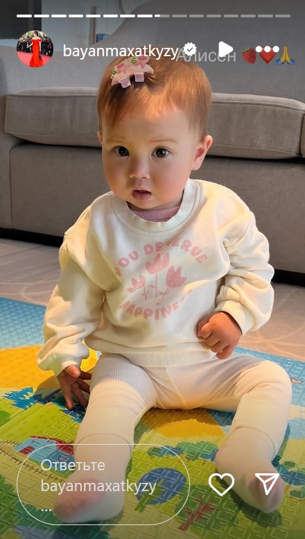 Баян отметила, что маленькая Алиса похожа на нее в детстве, а то время как маленькая Алма – копия своего папы Турсена в детстве.