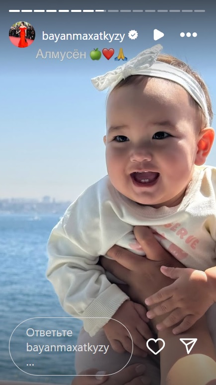 На снимках, опубликованных Баян, Турсен держит на руках двух их совместных дочерей – Алису и Алму.