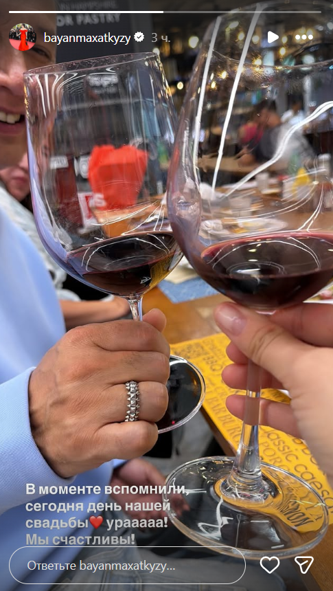 На опубликованном кадре в соцсетях видны их руки с бокалом. Под фото Баян написала: