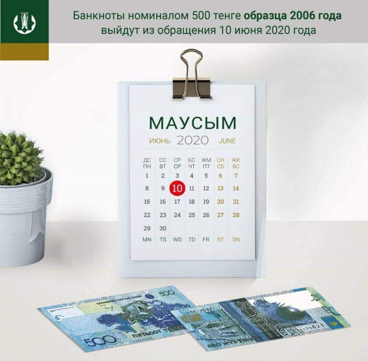 После 10 июня 2020 года банкноты номиналом 500 тенге образца 2006 года не являются законным платежным средством.