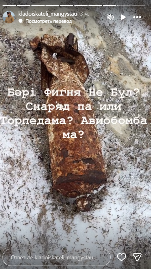 По информации источников, находку сделал местный охотник, рыбак и кладоискатель, автор Instagram-паблика Kladoiskateli_mangystau. Металлический объект, который визуально напоминал снаряд или старую авиационную бомбу, был обнаружен на поверхности примерно в 200 метрах от берега после отступления воды.