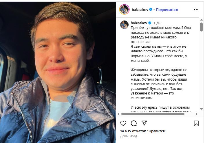 Младший брат казахстанской блогерши Айжан Байзаковой, прокомментировал в соцсетях волну критики, развернувшуюся вокруг его недавнего развода, передает Liter.kz.