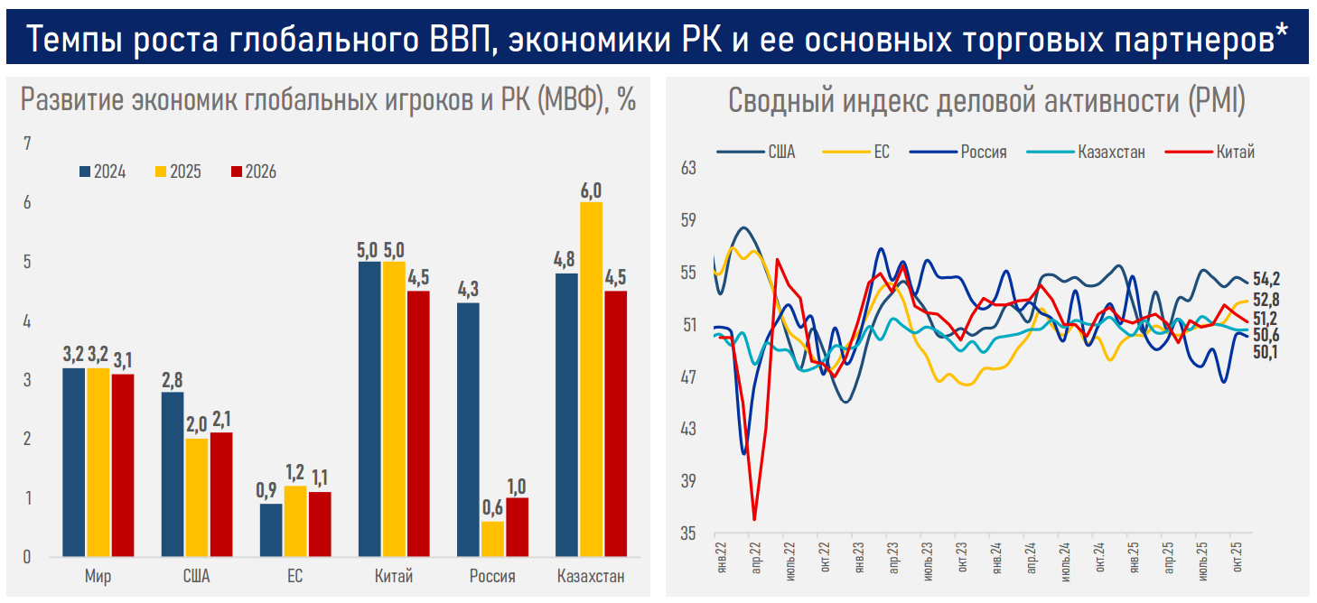 Боле того, в 2026 году внешние риски для экономики Казахстана могут быть связаны с более слабой сырьевой конъюнктурой относительно бюджетных параметров, замедлением экономик ключевых торговых партнеров, повышенной волатильностью потоков капитала, а также сохраняющейся сложной геополитической ситуацией в регионе.
