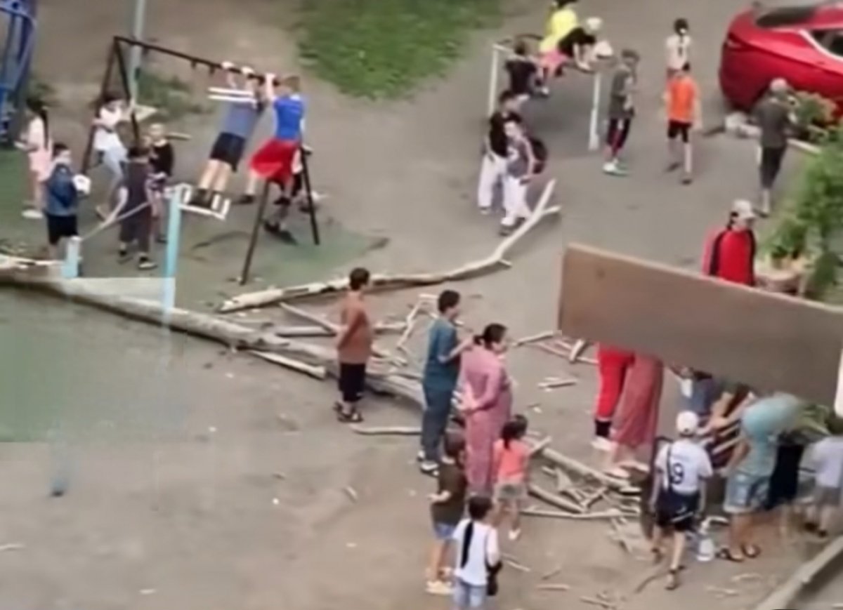 В одном из дворов Караганды дерево упало на мужчину прямо на детской площадке. Как утверждает автор видео, опубликованного в социальных сетях, пострадавший получил травму головы, а рядом с ним находился испуганный ребенок. Очевидцы вызвали скорую помощь, передает Liter.kz.