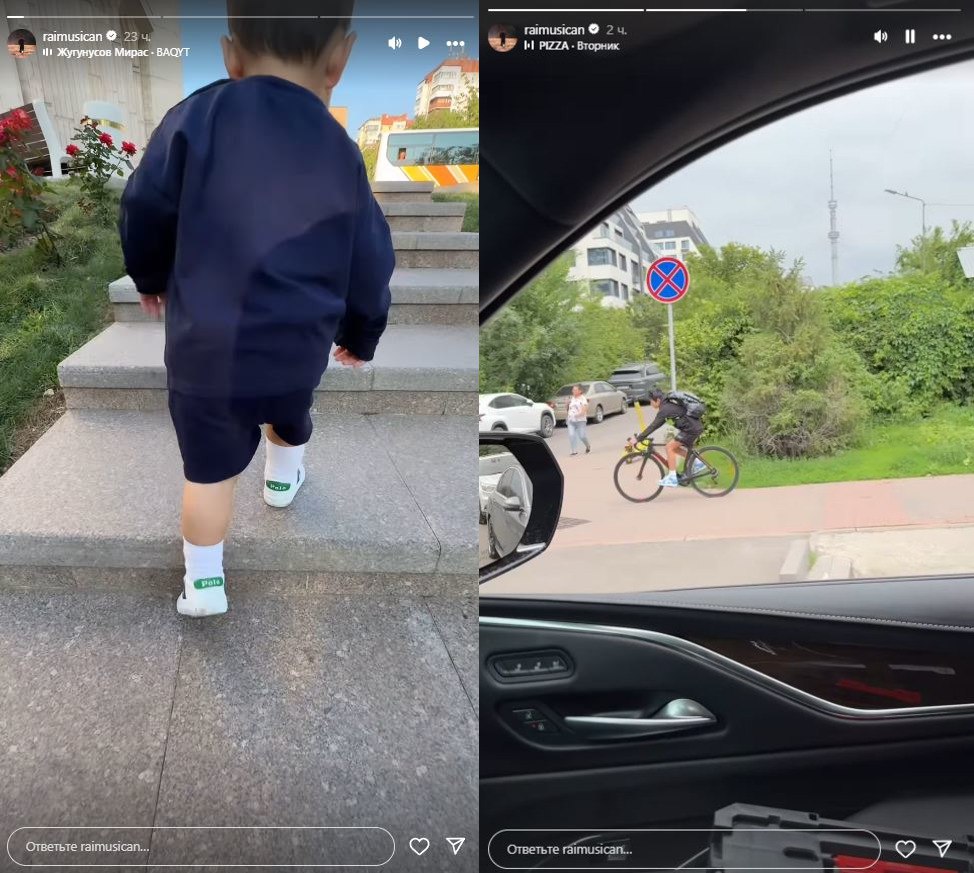 На одном из роликов видно, как маленький Ислам уверенно шагает по лесенке, а на другом – Муслим едет на велосипеде с рюкзаком за спиной. Raim активно вовлекает детей в активную и творческую жизнь: они вместе проводят много времени, занимаются спортом и участвуют в творческих проектах.