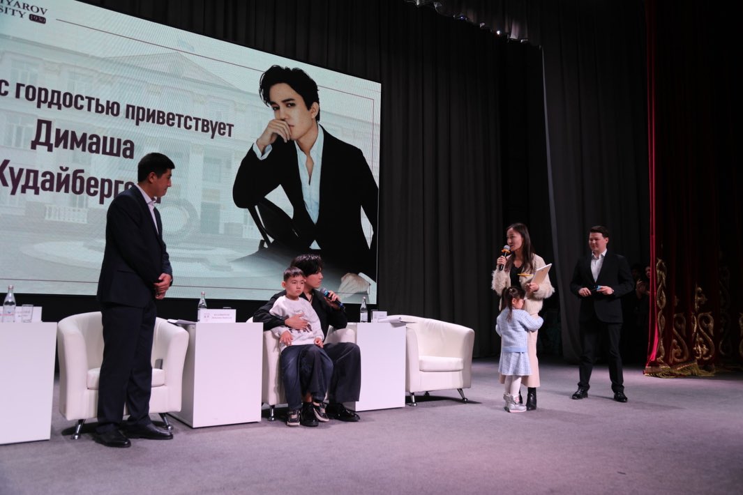 В ходе мотивационной встречи Димаш Кудайберген рассказал о своем жизненном и творческом пути – о том, как, сохраняя связь с национальной культурой и корнями, он шаг за шагом пришел к мировым сценам и международному признанию. Говоря о личных ориентирах, артист особо подчеркнул значение внутреннего содержания личности: