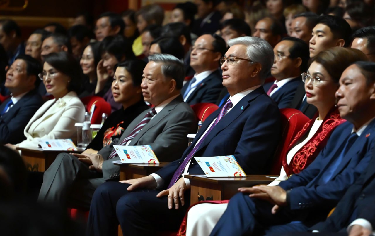 Президент Казахстана Касым-Жомарт Токаев и генеральный секретарь ЦК Коммунистической партии Вьетнама То Лам приняли участие в торжественном концерте, организованном в рамках дней культуры Вьетнама в Казахстане, передает Liter.kz.