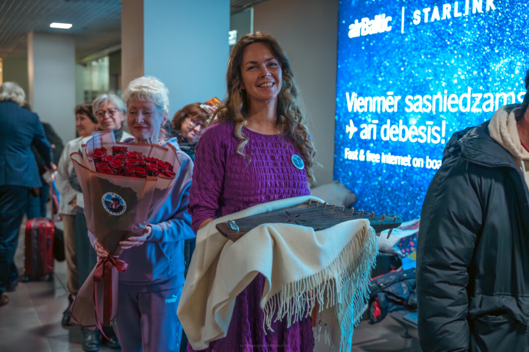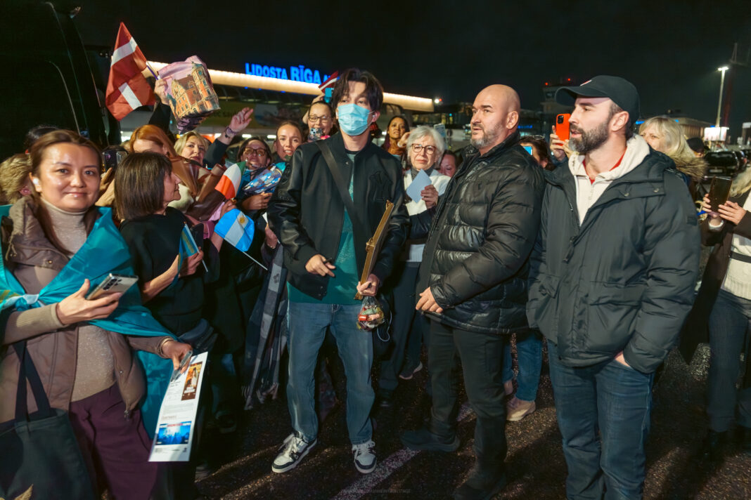 Поклонники Димаша по традиции тепло встретили артиста в аэропорту и подарили ему традиционный латышский музыкальный инструмент кокле.