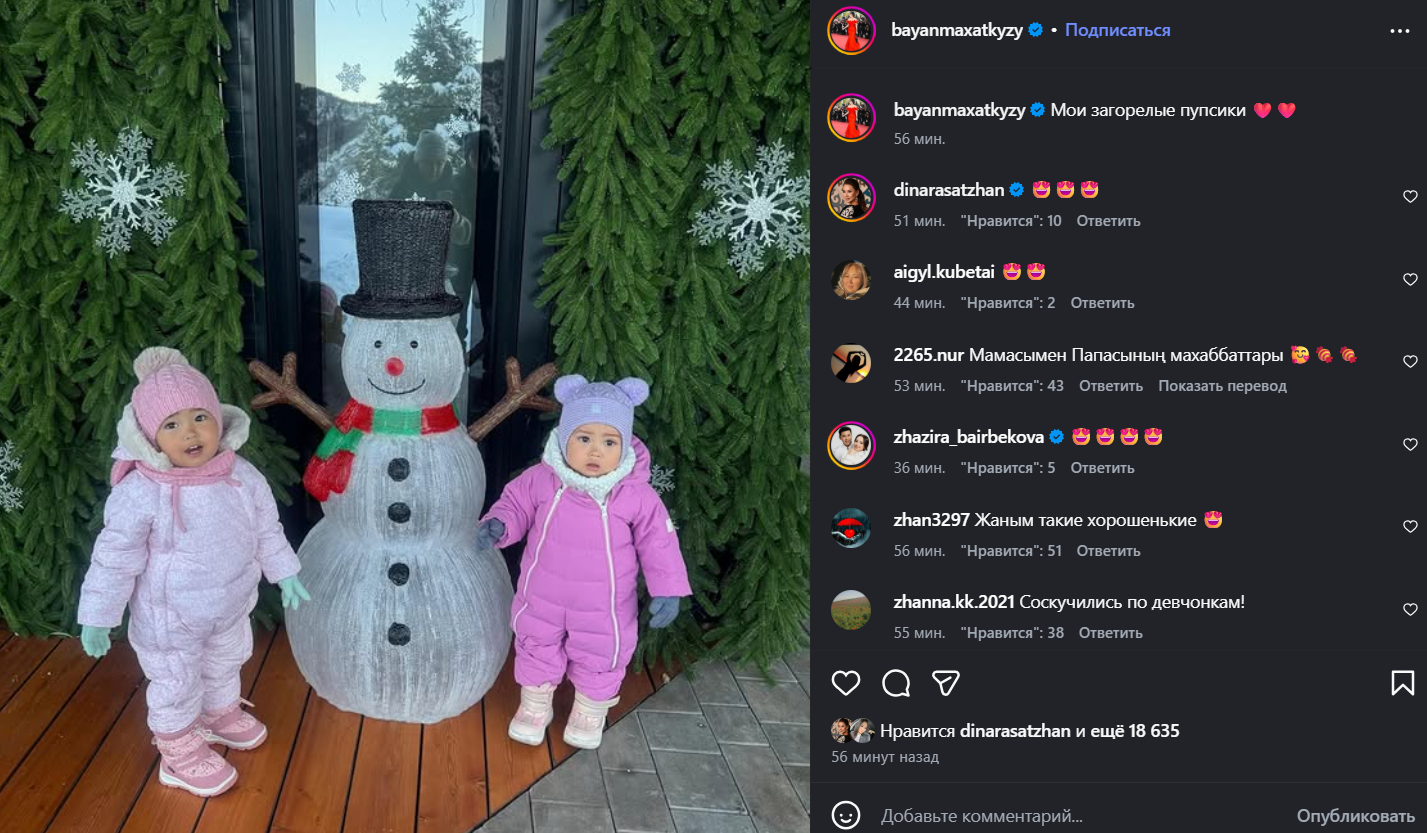 Кроме того, Баян показала в соцсети и своих младших детей рядом с игрушечным снеговиком, подписав фото: