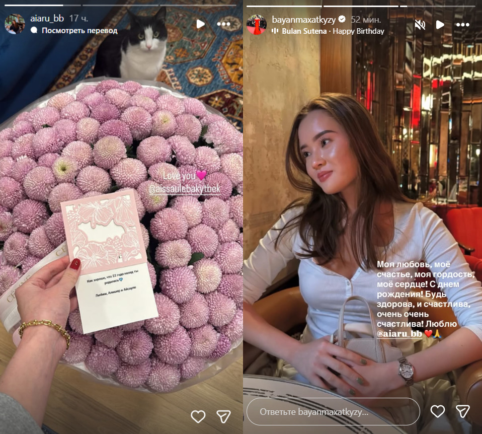 Айару поделилась с подписчиками в соцсетях подарком от старшей сестры Айсауле – огромным букетом цветов и открыткой с надписью: