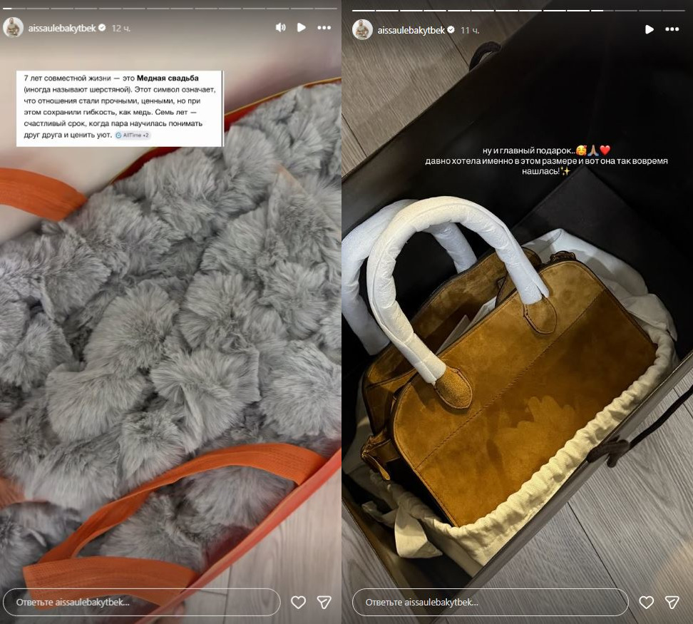 Главным же подарком стала сумка, которую Айсауле давно хотела и искала в определенном размере.