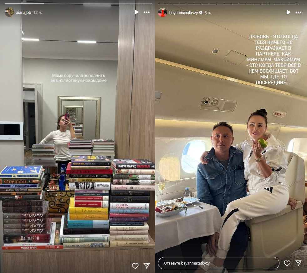 Айару опубликовала свою фотографию в Instagram-stories на фоне множества книг.
