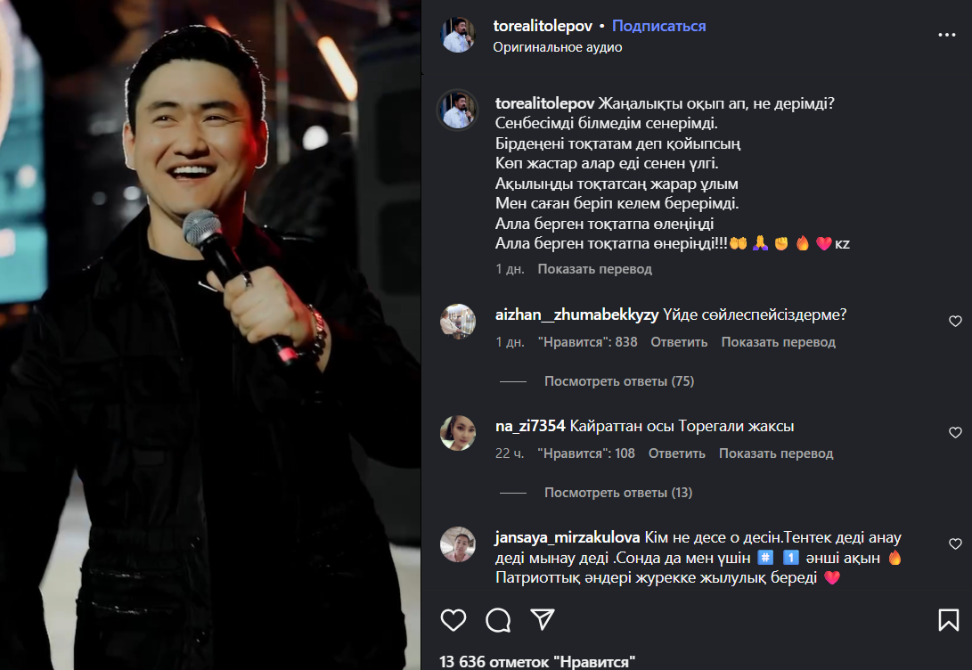 Тем не менее, многие поддержали Торегали, отметив его талант и харизму: