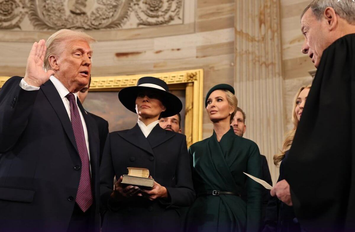 78-летний Трамп официально вступил в должность президента США. Это его второе пришествие в Белый дом – Трамп уже возглавлял США с 2016 по 2020 год. В истории США это 47-й президентский цикл. Трамп зачитывал клятву, положа одну руку на Библию, которую держала его жена Мелания.