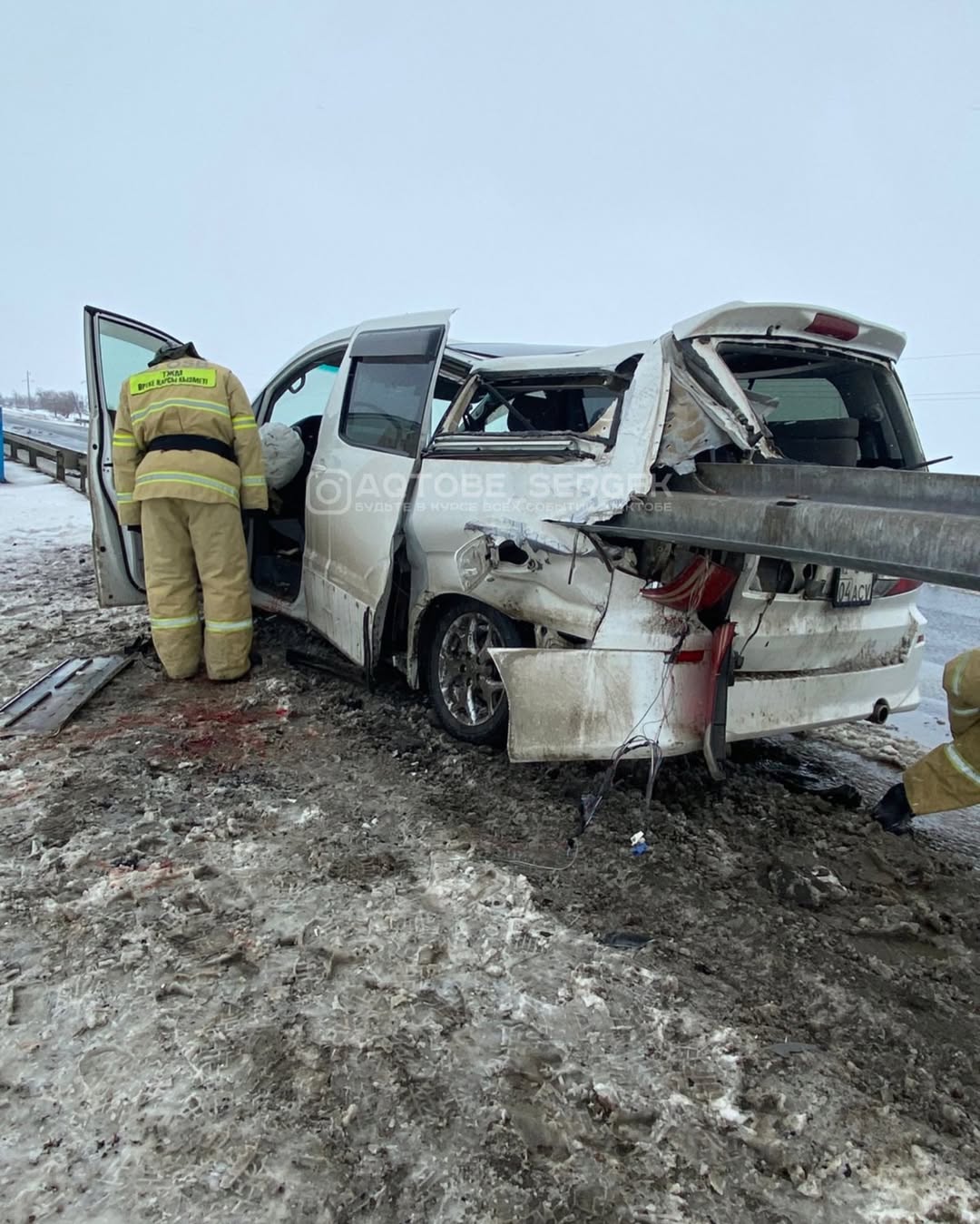 Дорожное ограждение насквозь прошило салон авто в результате ДТП в Актюбинской области