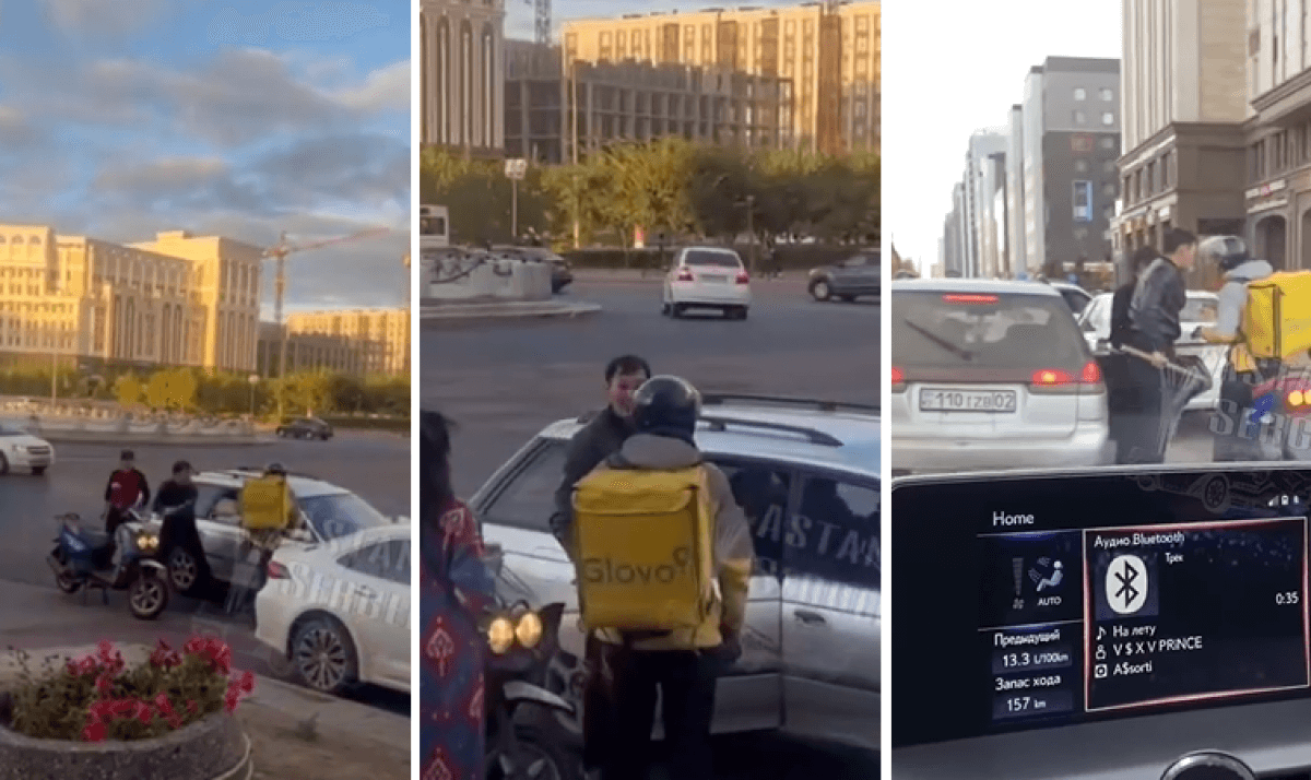 Кадры, опубликованные в Сети, были сделаны вечером на дороге в районе Мангилик ел. На одном из видео парень палкой бьет курьера Glovo.