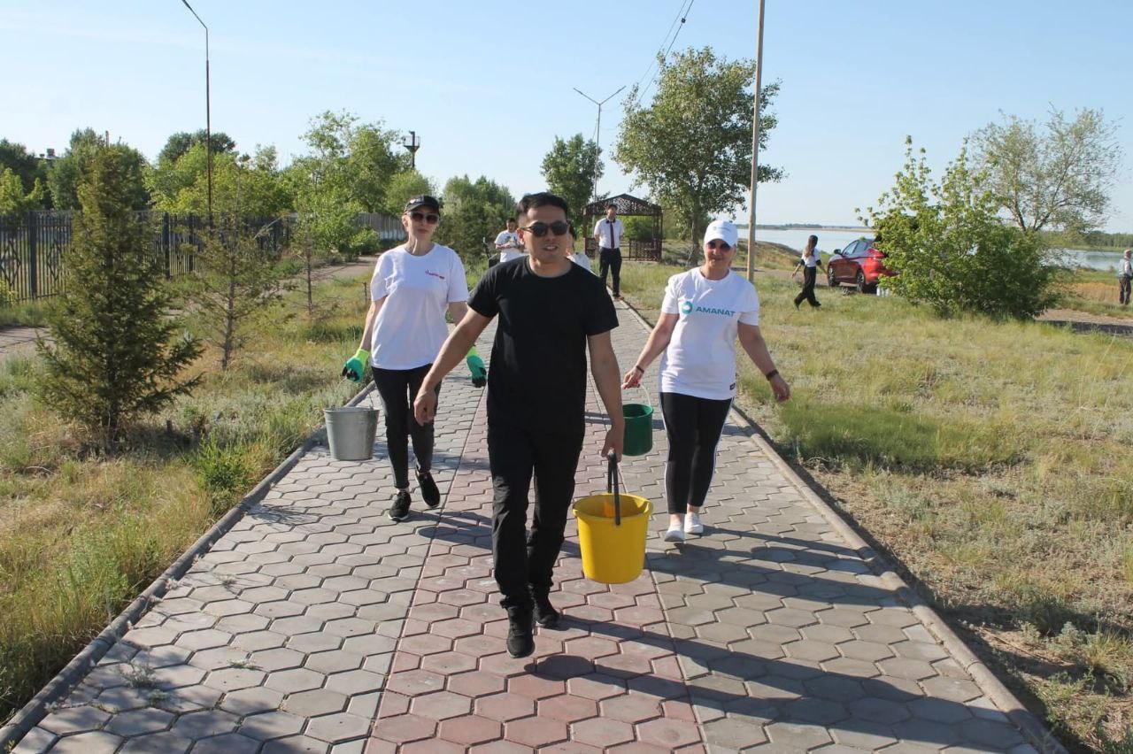 Традиционная уборка прошла и в области Улытау – на побережье Кенгирского водохранилища. Более 50 человек, включая представителей областного филиала партии AMANAT, молодежного трудового отряда “Жасыл ел” и Ассамблеи народа Казахстана, приняли участие в наведении порядка.