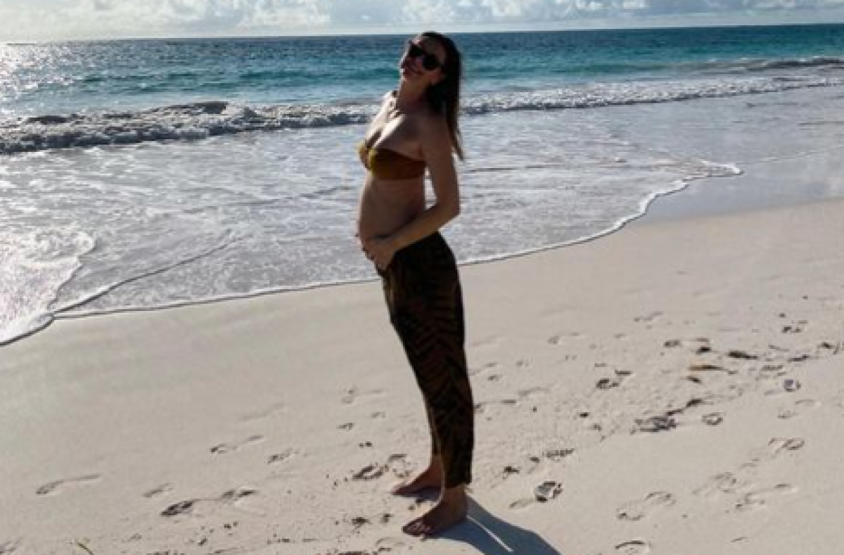 В Instagram Шарапова опубликовала фото на пляже, на котором она поддерживает увеличивающийся животик.