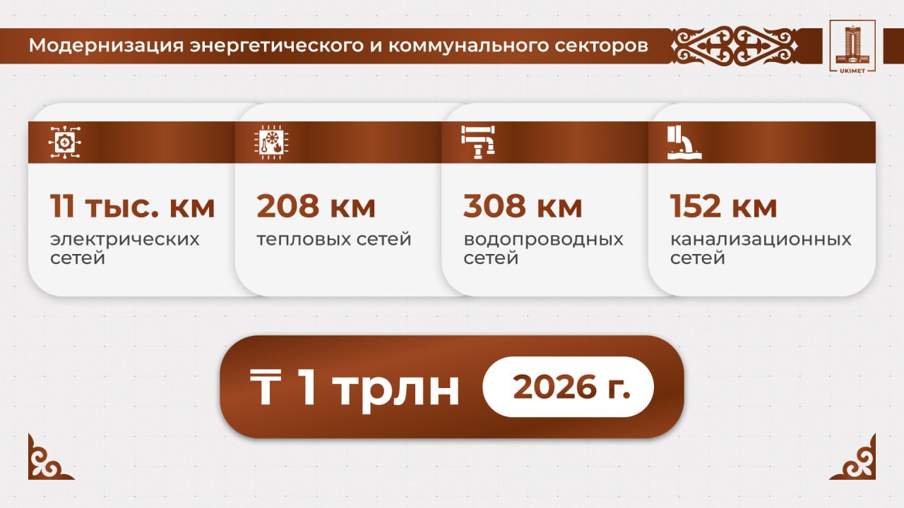 “Новая тарифная политика восстанавливает справедливые рыночные условия в регулируемых услугах. Сейчас предсказуемость тарифов снова привлекает частные инвестиции в сферу ЖКХ. К примеру, в энергетику за прошлый год привлечено 655 млрд тенге, в текущем году ожидается привлечение уже порядка 900 млрд. В целом, объем выработки электрической энергии к 2029 году увеличится на 39 млрд киловатт-часов”, — сказал Олжас Бектенов.