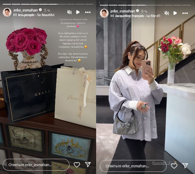Казахстанская певица Ерке Есмахан в сторис своего аккаунта в Instagram похвасталась подарками от супруга певца RaiM, передает Liter.kz.