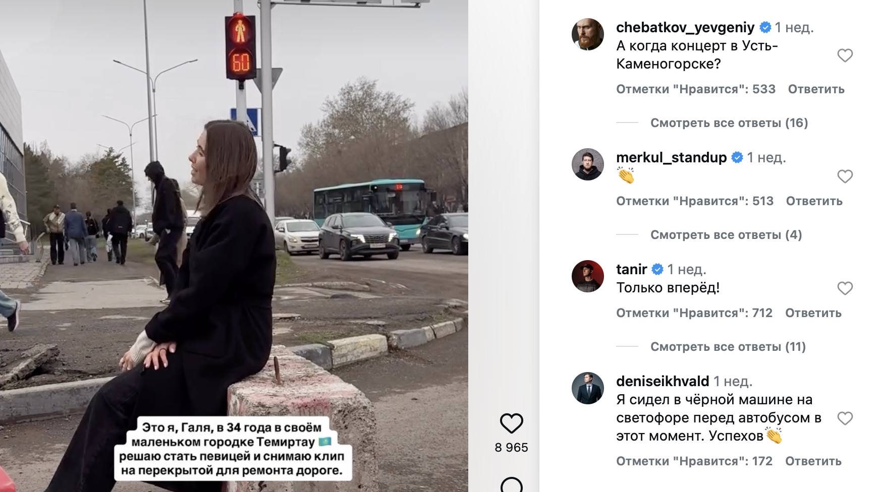 Помимо профессиональных артистов, пост вызвал большой отклик у рядовых пользователей. Жители Темиртау и других регионов поддержали стремление девушки следовать своей мечте, несмотря на социальные стереотипы.