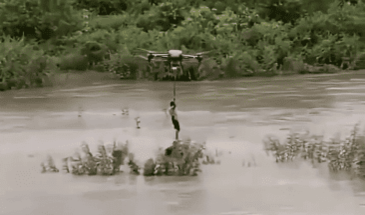 Фермер спас детей во время наводнения, вытащив их из воды коптером (ВИДЕО)