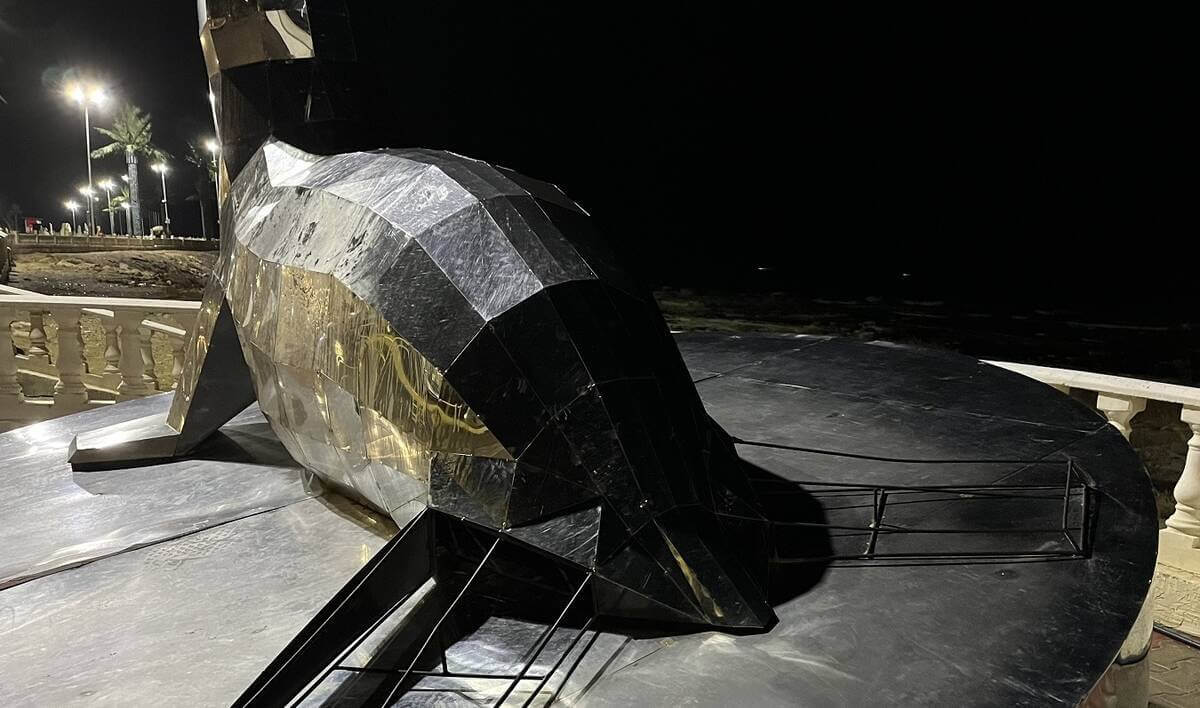 Вандалы оторвали у фигуры ласты и погнули другие элементы архитектурной конструкции.