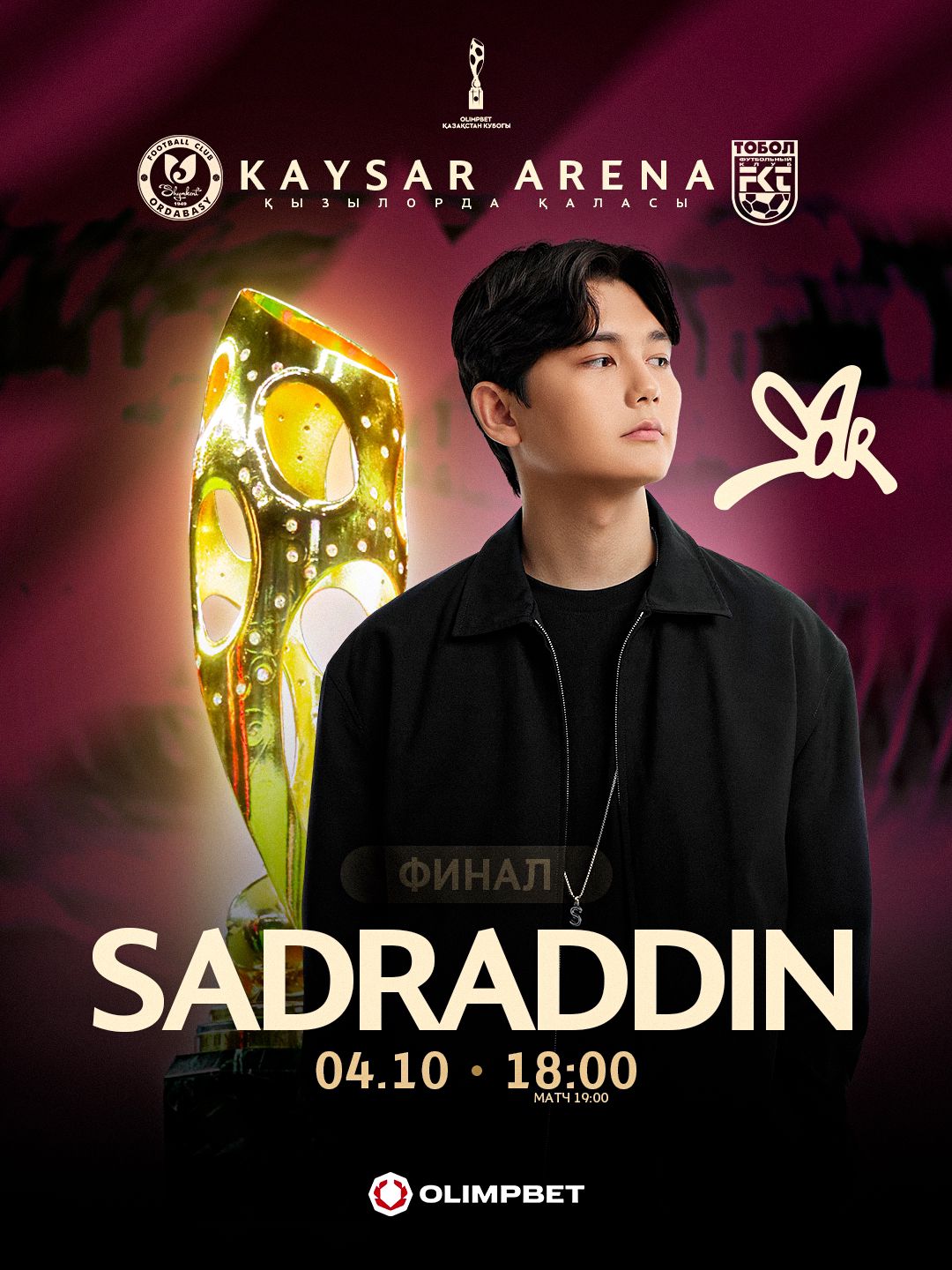 Особенным станет и культурное сопровождение финала: перед зрителями на стадионе “Кайсар Арена” выступят популярные казахстанские артисты – Sadraddin и группа Belucci. Sadraddin – автор и исполнитель, обладатель ряда музыкальных наград, чьи композиции уже завоевали широкую популярность. Группа Belucci – известный поп‑dance коллектив из Кызылорды, прославившийся своими энергичными треками и яркими сценическими номерами. Их выступления придадут празднику футбола особую атмосферу.